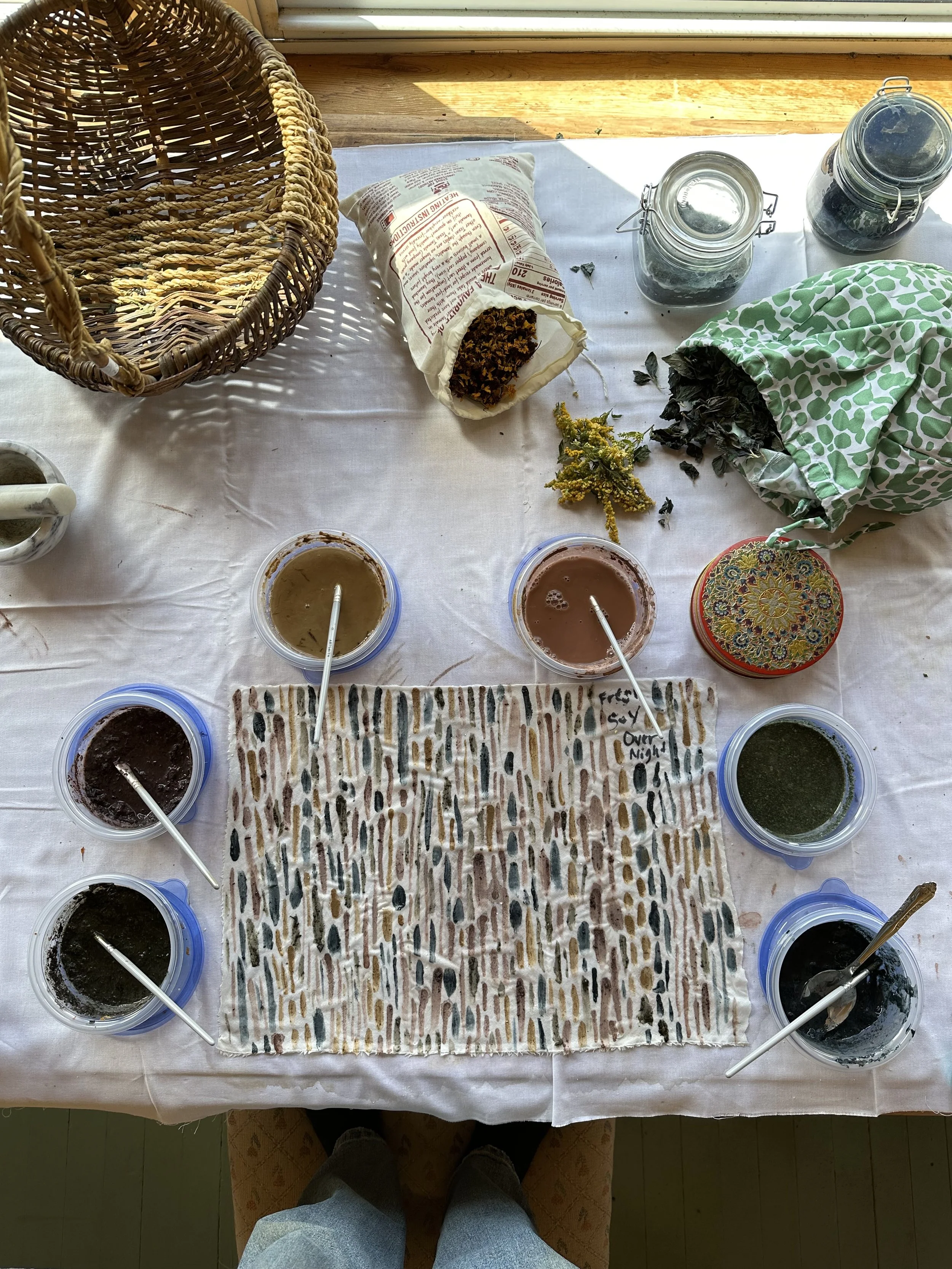 Yarn dyed by the 2023 Fiber Artist in Residence. The colors came from plants harvested around Gael Roots and Wild Roots.